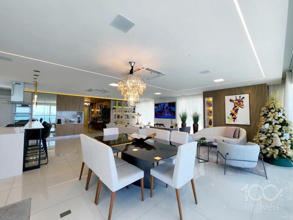 Apartamento de 310m² privativos de apartamento, automatizado, mobiliado e equipado com, 4 Suítes (hoje o apartamento esta com 3 Suítes pois na master foram feitos 2 super closets, porem pode ser entregue para você com a planta original de 4 Suítes), living amplo e confortável de frente para o mar com sala de estar, sala de jantar, espaço de leitura frente mar, sala de descanso frente mar com chaise, espaço gourmet, cozinha integrada, lavabo, área de serviço, elevador delivery, dependência de empregada e a sala de Cinema